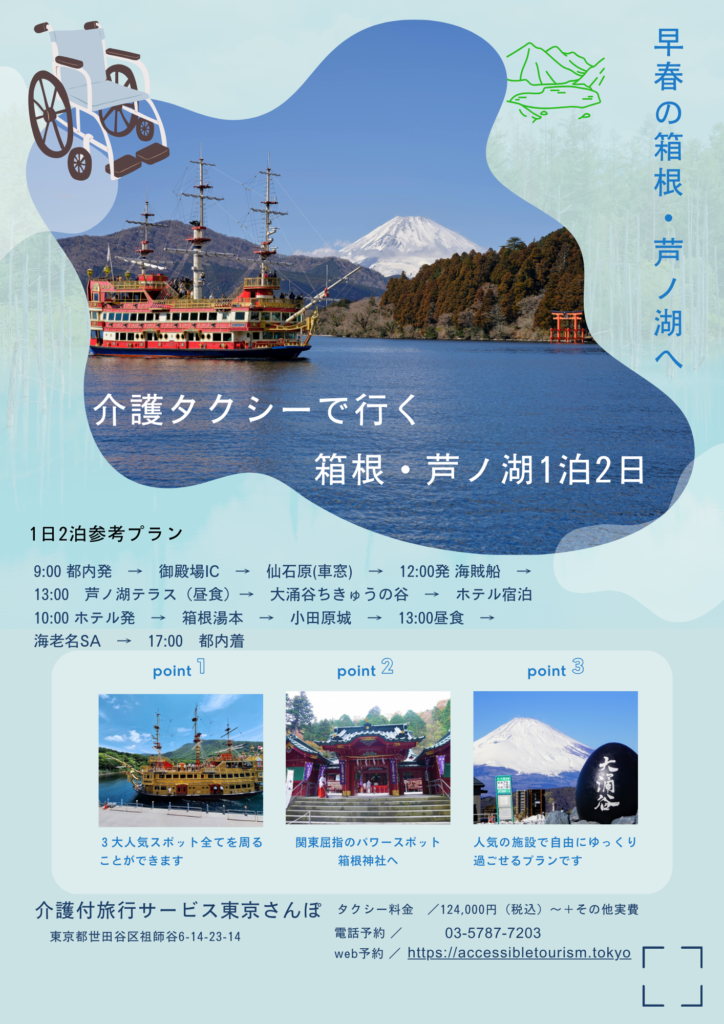 介護タクシーも運営していますので、介護タクシーを使ってのご旅行にもお伴いたします!